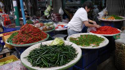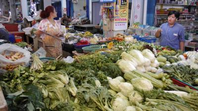 ...chaotischen Verkehr über das indische Stadtteil sowie durch Chinatown. Zu Fuß sind wir dann weiter zum Blumenmarkt, durch den Gemüsemarkt...