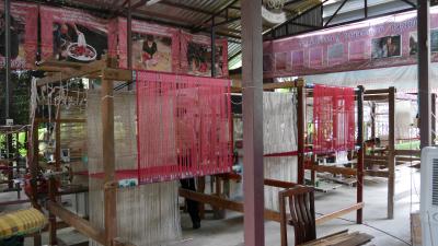 …eine Seidenweberei besucht haben. Es hat uns überrascht, wie dünn die Fäden für die Seidenstoffe sind.die Damit werden in wochewlanger Arbeit…