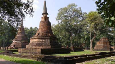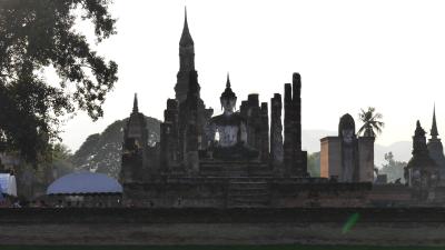 ...unabhängiges Thai Königreich, während der Herrschaft von König Ramkanghaend. Die einzigartigen Tempel und Monumente (ca. 20 innerhalb und ca. 70 außerhalb der alten Stadtmauer sind als UNESCO Weltkulturerbe wieder hergestellt bzw. rekonsruiert. Also los! Erst mal los in den inneren Bereich der Stadtmauer zu dem Tempel...