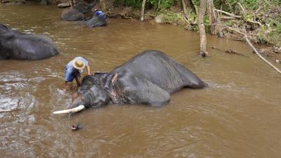 …Spaß es auch den Elefanten machte. Wan (unser Guide) sagte das ist sicher ein Camp wo es den Tieren sehr gut geht. Hier leben ca. 90 Tiere inklusive der verwaisten Jungtiere, die wir leider nicht zu sehen bekamen. Anschließend ging’s dann noch in eine Fabrik…