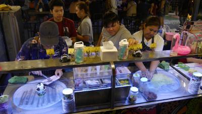 ...machen lassen. Ihr werdet Staunen, da wird sogar das Eis frisch zubereitet. Dauert von 0 bis zum fertigen Eisbecher knapp 3 Minuten. Ihr wollt sicher nicht wissen wie ausgezeichnet das Eis schmeckt. So, das war unser letzter Abend in Chiang Mai. Morgen geht's dann weiter nach Khao Lak.
