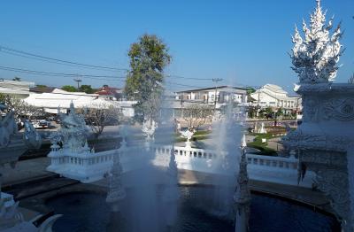 …vorbei an mobilen Springbrunnen, die gerade für das Lichtfest hergerichtet werden. Schon geht’s weiter Nordwärts nach Chiang Rai, dort erwartet uns...